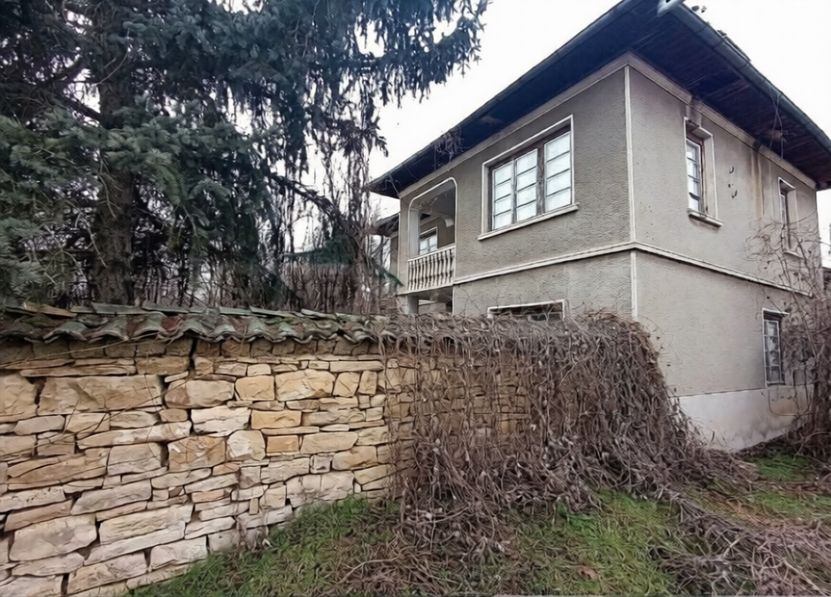 The property sits on an impressive plot of approximately 2,000 sq.m., fully enclosed by a solid stone wall, providing privacy and security. The yard also features outbuildings and a charming garden fountain, making it ideal for gardening, small-scale farming, or creating a уютное outdoor leisure space for family and guests.