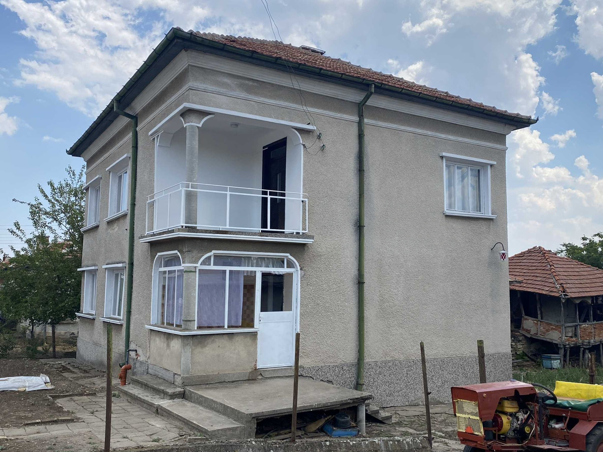 Located on the main street of the town, the house benefits from easy access to all essential amenities, including regular public transport, shops, a school, a kindergarten, and a bank everything needed for comfortable everyday living.